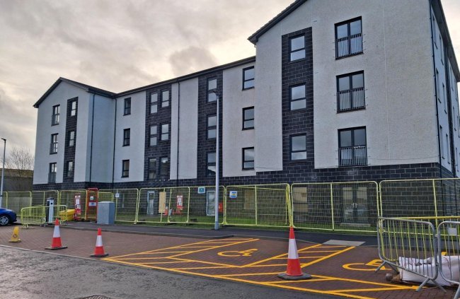 1 Bedroom 2nd Floor Flat in Elrick, with combined kitchen/living and shower over the bath.